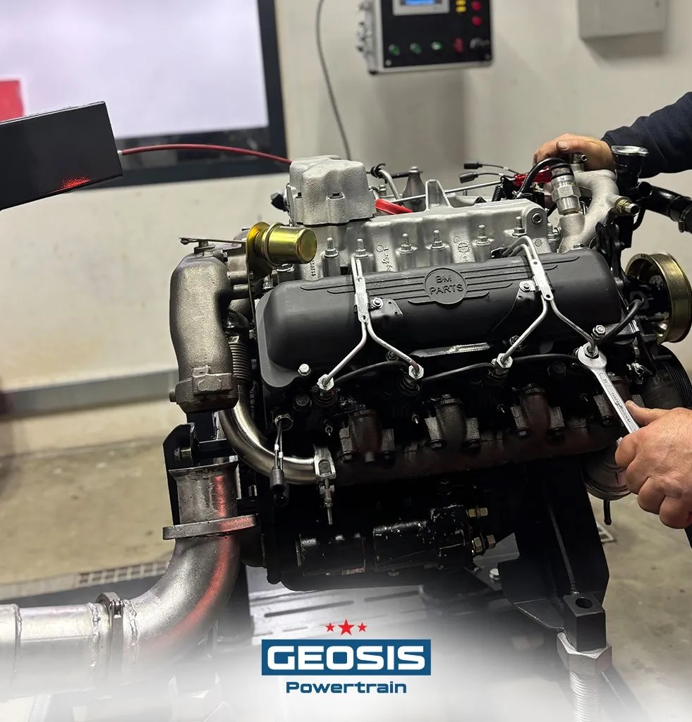 Geosis Powertrain Motor Test Ünitesi Bölümünde tüm taktik tekerlekli araçların motor bakım, onarım, yenileştirme işlemleri sonrası uzman ekibimiz tarafından Motor Güç, Tork, Yağ Sıcaklık, Basınç, Yakıt Tüketimi, Egzoz Sıcaklığı ve Hava Emme Basınç testlerine bakılarak ve son teknolojiye sahip Motor Test Ünitemizde (Bremze) test yapılarak teslim edilmektedir